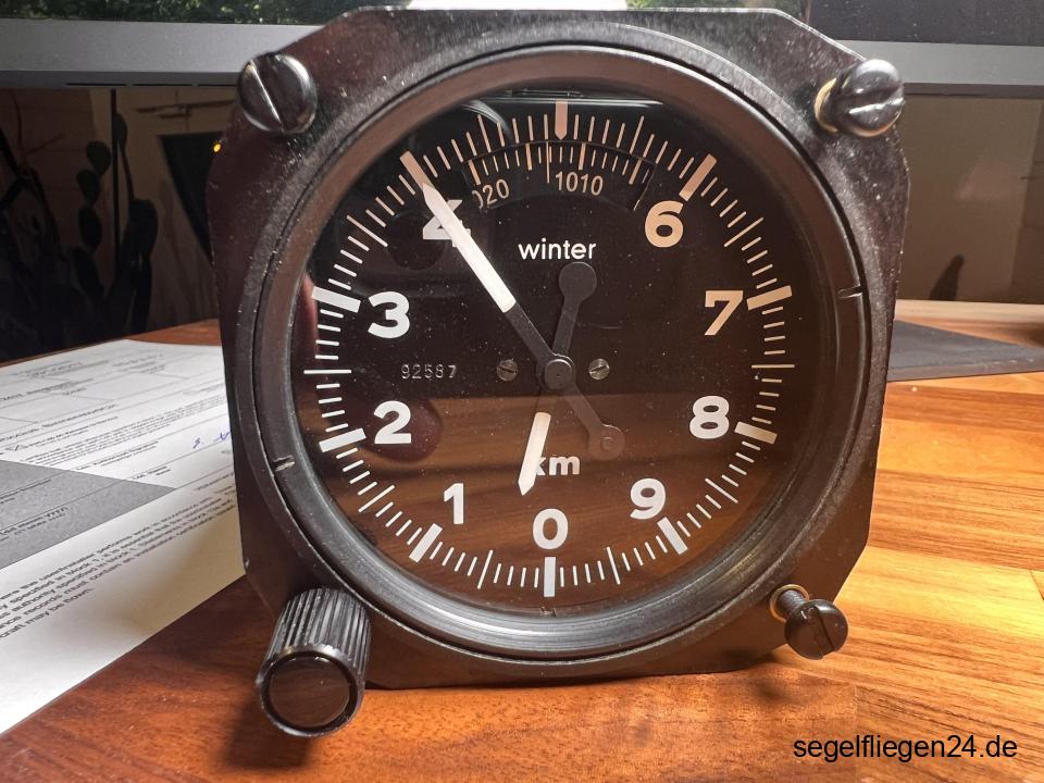 Winter Fein-Grob Höhenmesser 4 FGH 10, 80 mm, Typ 4110, Werk-Nr. 92587, Messbereich 0-1000-10000 m, grundüberholt durch Winter April 2017 mit Form 1, wegen Instrumentenwechsel abzugeben.
